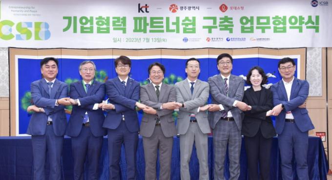 [È£³²´º½º¶óÀÎ = ¼ÀºÈ« ±âÀÚ] ±¤ÁÖ±¤¿ª½Ã(½ÃÀå °±âÁ¤)´Â 13ÀÏ ¡®2023 ±¹Á¦Áß¼Ò±â¾÷ÇùÀÇȸ(ICSB) ¼¼°è´ëȸ¡¯°¡ ¿¸° ±è´ëÁßÄÁº¥¼Ç¼¾ÅÍ¿¡¼ KT, ·Ôµ¥¼îÇÎ(ÁÖ)°ú ÇÔ²² ±â¾÷Çù·Â ÆÄÆ®³Ê½Ê ±¸ÃàÀ» À§ÇÑ ¾÷¹«Çù¾à(MOU)À» ü°áÇß´Ù.