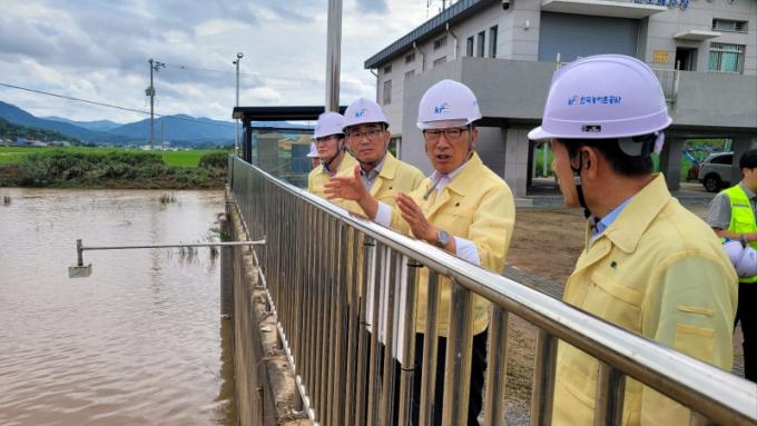 ÀÌ¿¡ Àü³²º»ºÎ¿Í Áö»ç Á÷¿øµéÀº ¹è¼öÀå ³» Àü±â½Ç°ú ±â°è½Ç·Î À¯ÀԵǴ ¹°À» Â÷´ÜÇϱâ À§ÇØ ¹è¼öÀå ÁÖº¯ ¸ð·¡ÁָӴϸ¦ ½×°í Àӽà ¾ç¼ö±â·Î ¹°À» »©´Â ÀÛ¾÷À» °è¼ÓÇØ ÇöÀç´Â ħ¼öµÈ ³ó°æÁö ´ëºÎºÐÀÇ ¹è¼ö°¡ ¿Ï·áµÈ »óÅÂÀÌ´Ù.