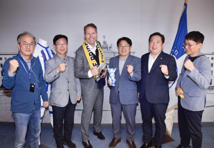 ´ëÇ¥´ÜÀº ¸ÕÀú ¡®Áö¸à½º½´Å¸Æ®¡¯¸¦ ¹æ¹®, ¿£½º¿ìº£ Äïü(Jens-Uwe Kunze) Ŭ·´È¸Àå ¾È³»·Î ¼ö¿µ¡¤Å״Ͻº¡¤À°»ó¡¤³ó±¸ °æ±âÀå µî üÀ°½Ã¼³µéÀ» µÑ·¯ºÃ´Ù.