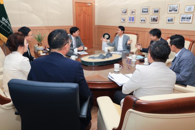 ±è ºÎ½ÃÀåÀº ¡°Áö¿ª´ëÇÐ ÇùÀÇȸ µîÀ» ÅëÇØ Áö¿ªÇõ½ÅÁ᫐ ´ëÇÐÁö¿øÃ¼°è¿Í °ü·ÃÇÑ Á¤ºÎÀÇ Á¤Ã¥ ¹æÇâ µîÀ» °øÀ¯Çϰڴ١±¸ç ¡°Áö¿ª´ëÇÐÀÇ À¯Çлý À¯Ä¡¿Í °ü·ÃÇØ Çö »óȲÀ» ºÐ¼®ÇÏ°í ³ª¾Æ°¥ ¹æÇâÀ» ÇÔ²² °í¹ÎÇϰí ÇùÀÇÇØ ³ª°¡°Ú´Ù¡±°í ¸»Çß´Ù.