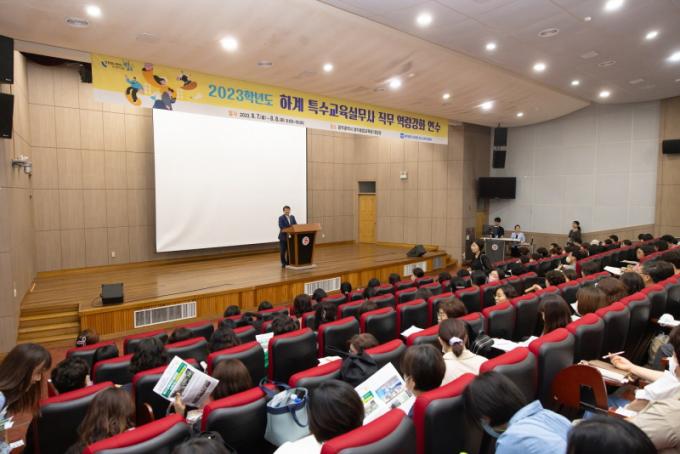 [È£³²´º½º¶óÀÎ = ¼ÀºÈ« ±âÀÚ] ±¤Áֽñ³À°Ã»ÀÌ 7~8ÀÏ ±¤ÁÖ±¤¿ª½ÃâÀÇÀ¶ÇÕ±³À°¿ø ´ë°´ç¿¡¼ Àå¾ÖÇлýÀ» Áö¿øÇϴ Ư¼ö±³À°½Ç¹«»ç 220¿©¸íÀÌ Âü¿©ÇÏ´Â ¡®2023Çг⵵ ÇÏ°è Æ¯¼ö±³À°½Ç¹«»ç Á÷¹« ¿ª·® °È ¿¬¼ö¡¯¸¦ ½Ç½ÃÇß´Ù°í ¹àÇû´Ù.