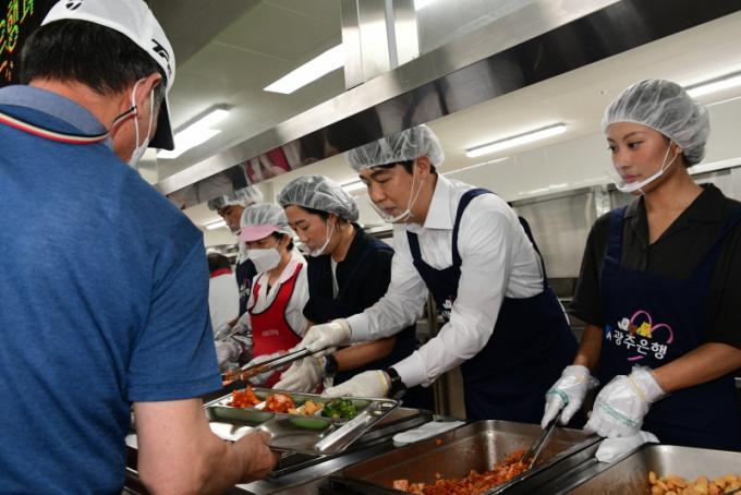 À̳¯ ¹è½Ä ºÀ»ç¿¡´Â À̱ͼø ºÎÀÇÀåÀ» ºñ·ÔÇÑ ½ÃÀÇ¿ø 15¸í°ú °íº´Àϱ¤ÁÖÀºÇàÀå, ±¤ÁÖÀºÇà È«º¸´ë»ç µî 30¿©¸íÀÌ ÇÔ²² Çß´Ù. ¹«´õÀ§°¡ ¿¬ÀÏ À̾îÁö´Â °¡¿îµ¥ ±¤ÁÖ½ÃÀÇȸ¿Í ±¤ÁÖÀºÇàÀº ³ëÀΰǰŸ¿îÀ» ãÀº ¾î¸£½Åµé¿¡°Ô »ï°èÅÁÀ» ´ëÁ¢Çß´Ù. »ï°èÅÁ ¹è½Ä ÈÄ¿¡´Â °úÀÏ, À½·á¼ö, ºÎä µîÀ» Àü´ÞÇÏ¸ç ¾î¸£½ÅµéÀÇ °Ç°ÇÑ ¿©¸§³ª±â¸¦ ÀÀ¿øÇß´Ù.