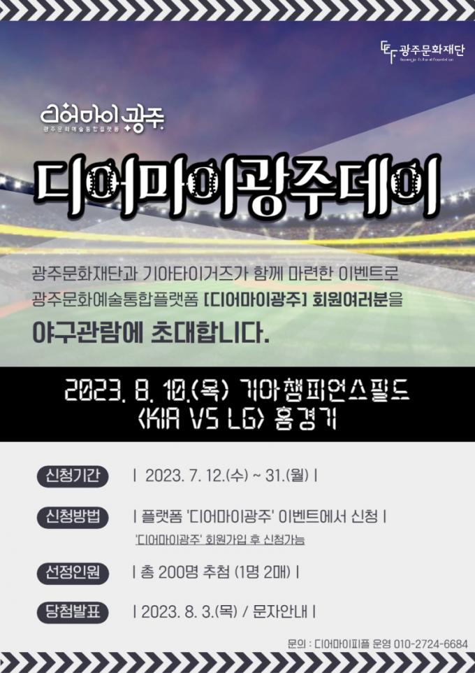 10ÀÏ¿¡´Â ±¤ÁÖ±â¾ÆÃ¨ÇǾð½ºÇʵ忡¼ ¿¸®´Â LG¿ÍÀÇ È¨°æ±â¿Í ¿¬°èÇØ ¡®µð¾î ¸¶ÀÌ ±¤ÁÖÀÇ ³¯¡¯ Çà»ç¸¦ ÁøÇàÇÑ´Ù. À̳¯ Çà»ç¿¡´Â »çÀü Ãß÷À¸·Î »ÌÈù ½Ã¹Î 400¿© ¸íÀÌ ´Üü·Î ¾ß±¸¸¦ °ü¶÷Çϸç, °æ±âÀå ¹Û È«º¸ºÎ½º¿¡¼ ȸ¿ø°¡ÀÔ À̺¥Æ®, °æ±âÀå ³» Àü±¤ÆÇ¿¡ È«º¸¿µ»ó ¼ÛÃâ µî È«º¸È°µ¿À» ÆîÄ£´Ù.