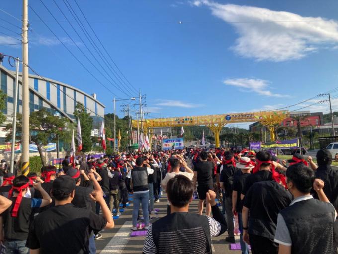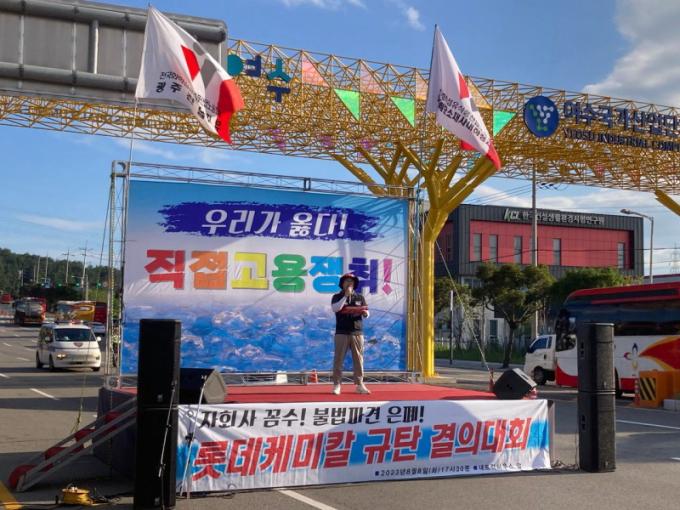 [È£³²´º½º¶óÀÎ = ¼ÀºÈ« ±âÀÚ] 8¿ù 8ÀÏ(È) ¶ß°Å¿î ¾Æ½ºÆÈÆ® ¾Æ·¡ 500¿©¸íÀÇ ·Ôµ¥ÄɹÌÄ® ÷´Ü¼ÒÀç ÇÏû³ëµ¿ÀÚµéÀÌ ÀÚȸ»ç Àüȯ Áß´Ü, ·Ôµ¥ÄɹÌÄ®ÀÇ Á÷Á¢°í¿ëÀ» ¿ä±¸Çϸç ÅõÀï¿¡ ³ª¼¹´Ù.