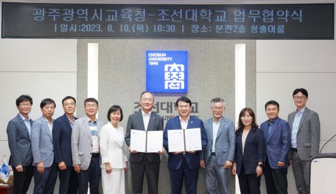 Á¶¼±´ëÇб³(ÃÑÀå ¹Î¿µµ·)´Â 10ÀÏ ¿ÀÀü Á¶¼±´ë ûÃâ¾î·ë¿¡¼ ±¤Áֽñ³À°Ã»°ú ±¤ÁÖ ÃÊÁߵ°íµî±³À° ¹ßÀüÀ» À§ÇÑ ¾÷¹«Çù¾àÀ» ü°áÇß´Ù°í ¹àÇû´Ù.