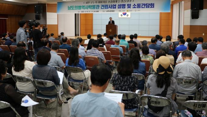 ³ªÁÖ½Ã(½ÃÀå À±º´ÅÂ)´Â Áö³ 14ÀÏ ³ªÁֽùÎȸ°ü¿¡¼ Àü¶ó³²µµ¿Í ÇÔ²² ½Ã¹Î 150¿©¸íÀÌ Âü¼®ÇÑ °¡¿îµ¥ ¡®³²µµÀǺ´¿ª»ç¹Ú¹°°ü °Ç¸³»ç¾÷ ¼³¸í ¹× ¼ÒÅë °£´ãȸ¡¯¸¦ °¡Á³´Ù°í 16ÀÏ ¹àÇû´Ù. °£´ãȸ´Â °ÇÃà½ÃÇà»çÀÇ ³²µµÀǺ´¿ª»ç¹Ú¹°°ü °Ç¸³ °èȹ¹ßÇ¥¸¦ ½ÃÀÛÀ¸·Î »ç¾÷ ÃßÁø °æÀ§, ÁÖ¿ä °ü½É»ç Q&A, ³ªÁֽà ÀÌÇà»çÇ×, ±â´ëÈ¿°ú, ¿¬°è»ç¾÷ ¼³¸í¿¡ À̾î Âü¼®ÀÚ °£ ÁúÀÇÀÀ´äÀÌ ÁøÇàµÆ´Ù.
