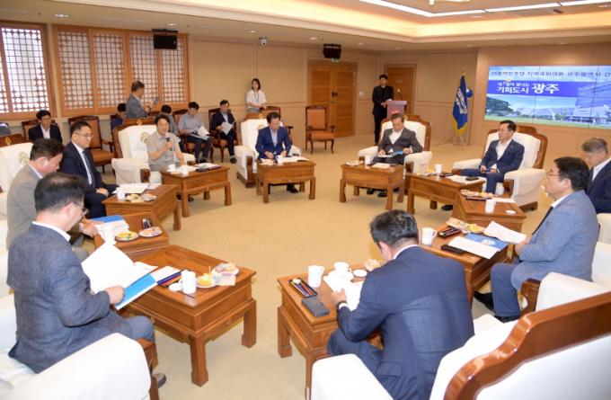 [È£³²´º½º¶óÀÎ = ¼ÀºÈ« ±âÀÚ] ±¤ÁÖ±¤¿ª½Ã(½ÃÀå °±âÁ¤)¿Í ´õºÒ¾î¹ÎÁÖ´ç ±¤ÁÖÁö¿ª ±¹È¸ÀÇ¿øÀº 19ÀÏ ¿ÀÈÄ 3½Ã ½Ãû ºñÁî´Ï½º·ë¿¡¼ °£´ãȸ¸¦ ¿¾î ³»³âµµ ±¹ºñ È®º¸¿Í ½ÃÁ¤ ÁÖ¿ä Çö¾È ÇØ°áÀ» À§ÇÑ ÀÔ¹ý ÃßÁø¿¡ ÈûÀ» ¸ðÀ¸±â·Î Çß´Ù.