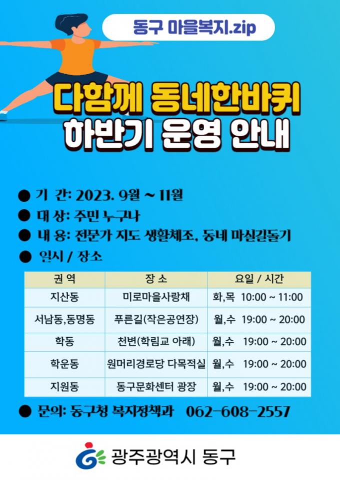 [È£³²´º½º¶óÀÎ = ¼ÀºÈ« ±âÀÚ] ±¤Áֽà µ¿±¸(ûÀå ÀÓÅÃ)´Â ¿ÃÇØ »ó¹Ý±â¿¡ ÀÌ¾î ¿À´Â 9¿ùºÎÅÍ ÁֹεéÀÇ °Ç°ÁõÁø°ú ÀÌ¿ô °£ ¼ÒÅë Ȱ¼ºÈ¸¦ À§ÇÑ ¡®´ÙÇÔ²² µ¿³× ÇѹÙÄû¡¯ ¿î¿µÀ» ÇϹݱâºÎÅÍ Àç°³ÇÑ´Ù°í ¹àÇû´Ù.
