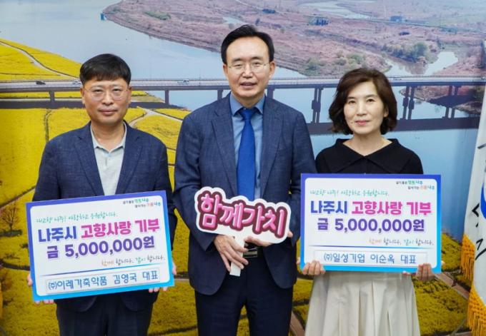 ³ªÁÖ½Ã(½ÃÀå À±º´ÅÂ)´Â ¢ßÀϼº±â¾÷ À̼ø¿Á ´ëÇ¥, ¢ßÀÌ·¹°¡Ãà¾àǰ ±è¿µ±¹ ´ëÇ¥°¡ °¢°¢ °íÇâ»ç¶û±âºÎ±Ý 500¸¸¿øÀ» ±âŹÇß´Ù°í 00ÀÏ ¹àÇû´Ù.