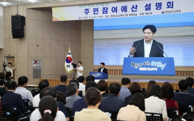 [È£³²´º½º¶óÀÎ = ¼ÀºÈ« ±âÀÚ] Àü¶ó³²µµ±³À°Ã»(±³À°°¨ ±è´ëÁß)ÀÌ 6ÀÏ(¼ö) û»ç ´ëȸÀǽǿ¡¼ Çлý, Çкθð, ±³Á÷¿ø, ÁֹΠµî 300¿© ¸íÀÌ Âü¼®ÇÑ °¡¿îµ¥ ¡®Àü¶ó³²µµ±³À°ºñƯº°È¸°è 2024³âµµ ¿¹»êÆí¼º Àǰ߼ö·ÅÀ» À§ÇÑ ÁÖ¹ÎÂü¿©¿¹»ê ¼³¸íȸ¡¯¸¦ °³ÃÖÇß´Ù.