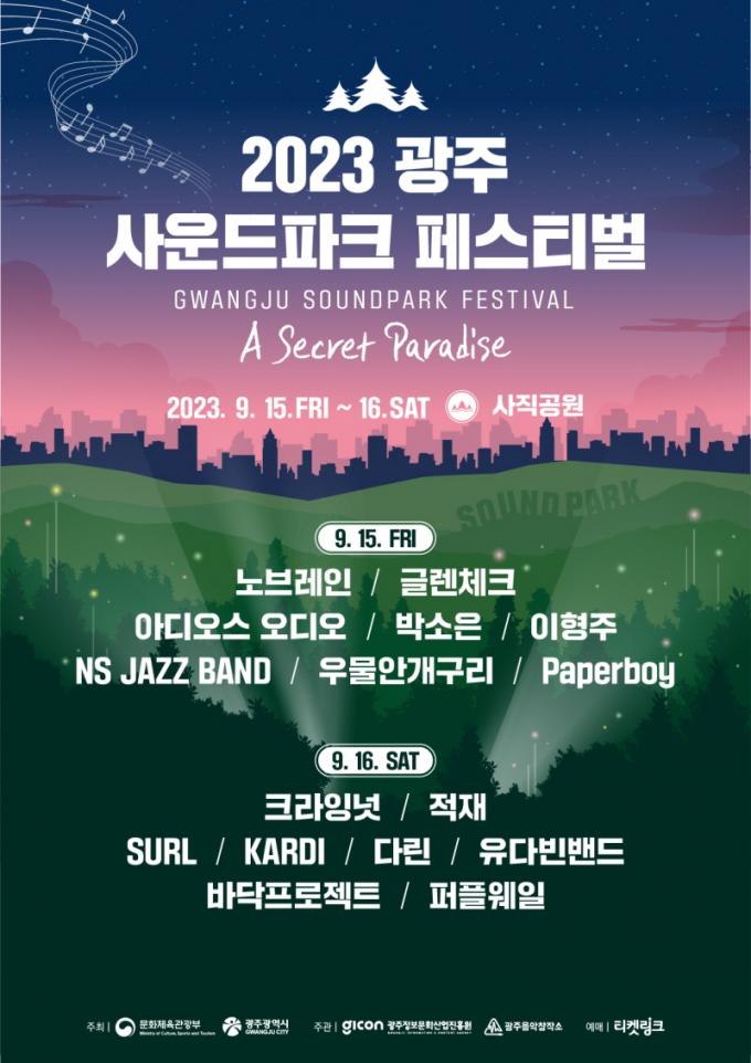 ±¤ÁÖ±¤¿ª½Ã(½ÃÀå °±âÁ¤)´Â ¿À´Â 15~16ÀÏ ±¤ÁÖ»çÁ÷°ø¿ø ÀÏ¿ø¿¡¼ ¡®2023 ±¤ÁÖ »ç¿îµåÆÄÅ©Æä½ºÆ¼¹ú¡¯À» °³ÃÖÇÑ´Ù. À̹ø ÃàÁ¦´Â ¹®ÈüÀ°°ü±¤ºÎ¿Í ±¤Áֽð¡ °øµ¿ÁÖÃÖÇÏ°í ±¤ÁÖÁ¤º¸¹®È»ê¾÷ÁøÈï¿ø ±¤ÁÖÀ½¾Ç»ê¾÷ÁøÈï¼¾ÅÍ ÁÖ°üÀ¸·Î ÆîÃÄÁø´Ù. ¿ÃÇØ ±¤ÁÖ»ç¿îµåÆÄÅ©Æä½ºÆ¼¹ú °ø¿¬Àº ¿ÀÈÄ 3½ÃºÎÅÍ ¹ã 10½Ã±îÁö ÁøÇàµÈ´Ù.