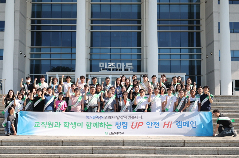 [È£³²´º½º¶óÀÎ = ¼ÀºÈ« ±âÀÚ] Àü³²´ëÇб³ ±³Á÷¿ø°ú ÇлýµéÀÌ Ã»¹ÙÁö¸¦ ÀÔ°í û·ÅÀ» ´ÙÁüÇÏ´Â ¡®Ã»·ÅUP ¾ÈÀü HI¡¯ Ä·ÆäÀÎÀ» ÆîÃÆ´Ù.