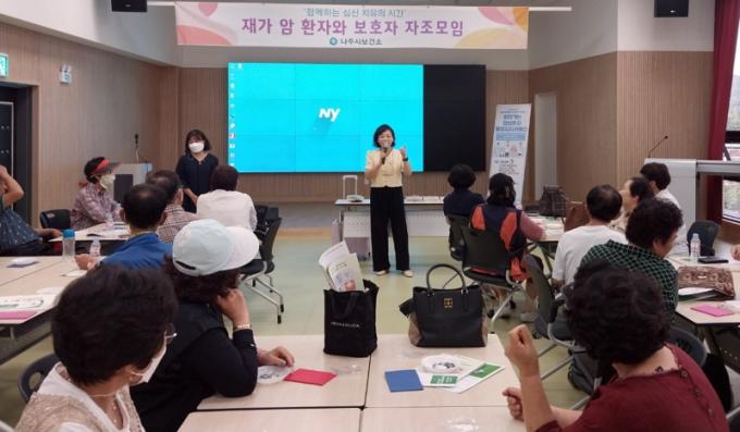 ³ªÁÖ½Ã(½ÃÀå À±º´ÅÂ)´Â ¾Ï»ýÁ¸ÀÚÅëÇÕÁöÁö¼¾ÅÍ¿Í ÇÔ²² º¸°Ç¼Ò 2µ¿ ´Ù¸ñÀû°´ç¿¡¼ ÀÚÁ¶¸ðÀÓÀ» °¡Á³´Ù°í 7ÀÏ ¹àÇû´Ù. Áö³ 6¿ù ÀüºÏ °íâ À£ÆÄÅ©½ÃƼ 1¹Ú 2ÀÏ Èú¸µÄ·ÇÁ¿¡ ÀÌÀº 2ȸÂ÷ ÀÚÁ¶¸ðÀÓÀ¸·Î Àç°¡¾ÏȯÀÚ¿Í °¡Á· 20¸íÀÌ Âü¿©Çß´Ù.