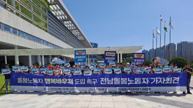 [È£³²´º½º¶óÀÎ = ¼ÀºÈ« ±âÀÚ] ¡®Àü³² µ¹º½³ëµ¿ÀÚ ±Ç¸®Ã£±â ¿îµ¿º»ºÎ(ÀÌÇÏ_µ¹º½¿îµ¿º»ºÎ)¡¯´Â 9¿ù 7ÀÏ Àü³²µµÃ» ¾Õ¿¡¼ ±âÀÚȸ°ßÀ» °®°í µ¹º½³ëµ¿ÀÚ Çູ¹Ù¿ìó µµÀÔÀ» Àü³²µµ¿¡ Ã˱¸Çß´Ù.