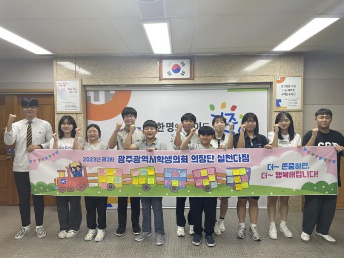 ƯÈ÷ ÇлýµéÀº ÃÖ±Ù À̽´¸¦ ¹Ý¿µÇØ ¡®ÇлýÀαÇÁ¶·Ê¡¯¸¦ ÇÔ²² »ìÆìº¸°í ÀÌ¿¡ ´ëÇÑ »ý°¢À» ³ª´³´Ù. ¶Ç Çлý°ú ±³»ç »Ó¸¸ ¾Æ´Ï¶ó ±³À°°øµ¿Ã¼ ¸ðµÎÀÇ ÀαÇÀ» ¾î¶»°Ô º¸ÀåÇÒ ¼ö ÀÖÀ»Áö ÇлýÀÇȸ º°·Î À̾߱âÇϱ⵵ Çß´Ù. ÀÌÈÄ ÇлýµéÀº ¡®´õ Á¸ÁßÇÏ¸é ´õ ÇູÇÏ´Ù¡¯´Â ÀÇÀå´Ü ¸Þ½ÃÁö¸¦ ´ãÀº ¡®±¤ÁÖ±³À° »ó»ý ¿Â÷¡¯¸¦ ¸¸µå´Â ½Ã°£µµ °¡Á³´Ù.