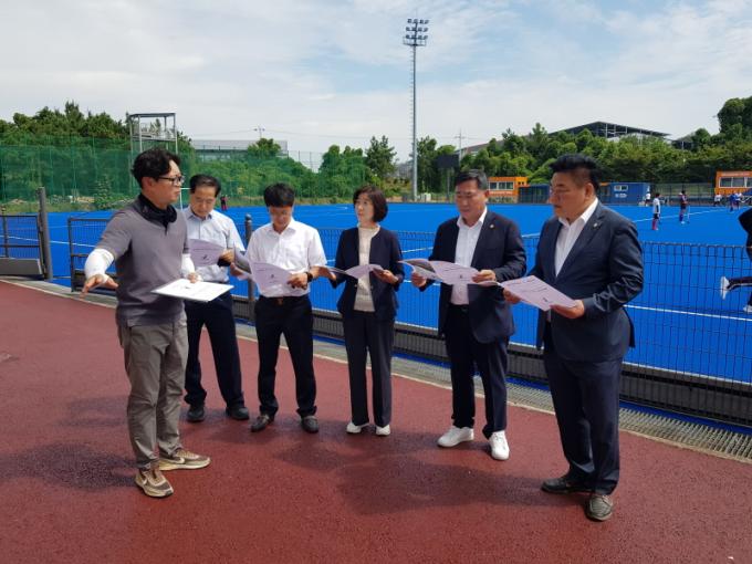 ƯÈ÷, ¡®¸ñÆ÷±¹Á¦Ã౸¼¾ÅÍ¡¯´Â Áö³ Á¦381ȸ ÀÓ½Ãȸ ÇöÁöȰµ¿ ±â°£¿¡µµ ¹æ¹®ÇÏ¿© Àü±¹Ã¼À°´ëȸ ´ëºñ ½Ã¼³Á¤ºñ°¡ ½Ã±ÞÇÔÀ» ÁöÀûÇß°í, ½Ã¼³°³¼± ¿¹»êµµ Ãß°¡·Î ÅõÀÔµÈ »óȲÀ̶ó, Àü ÃþÀÇ ¼÷¼Ò¿Í ÈÀå½Ç ±×¸®°í, »ç¿ì³ª½Ç, ½Ä´ç ½Ã¼³À» Àå½Ã°£¿¡ °ÉÃÄ ²Ä²ÄÈ÷ Á¡°ËÇÏ¿´´Ù. ¿ÀÈÄ¿¡´Â ¡®¸ñÆ÷Á¾ÇÕ°æ±âÀ塯, ¡®¹Ý´Ùºñ üÀ°¼¾ÅÍ¡¯, ¡®¸ñÆ÷½Ç³»¼ö¿µÀ塯, ¡®¸ñÆ÷½Ç³»Ã¼À°°ü¡¯, ¡®ºÎÁÖ»ê ±¹Á¦Å¬¶óÀּ̹¾ÅÍ¡¯, ¡®¿µ»êÈ£ Ä«´©°æ±âÀåÀ» ¹æ¹®ÇÏ¿´´Ù.