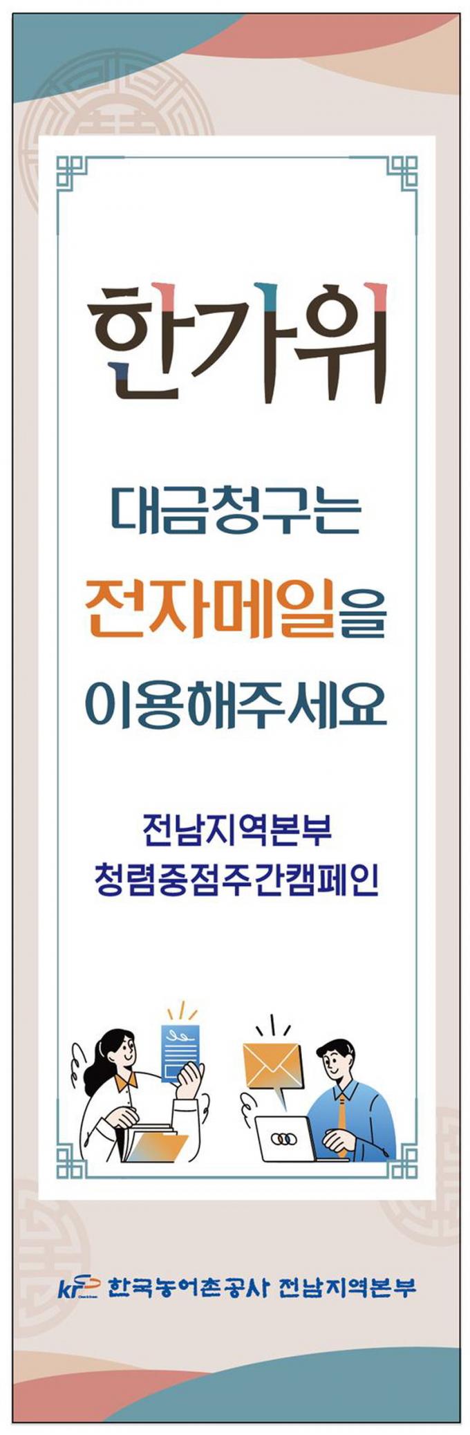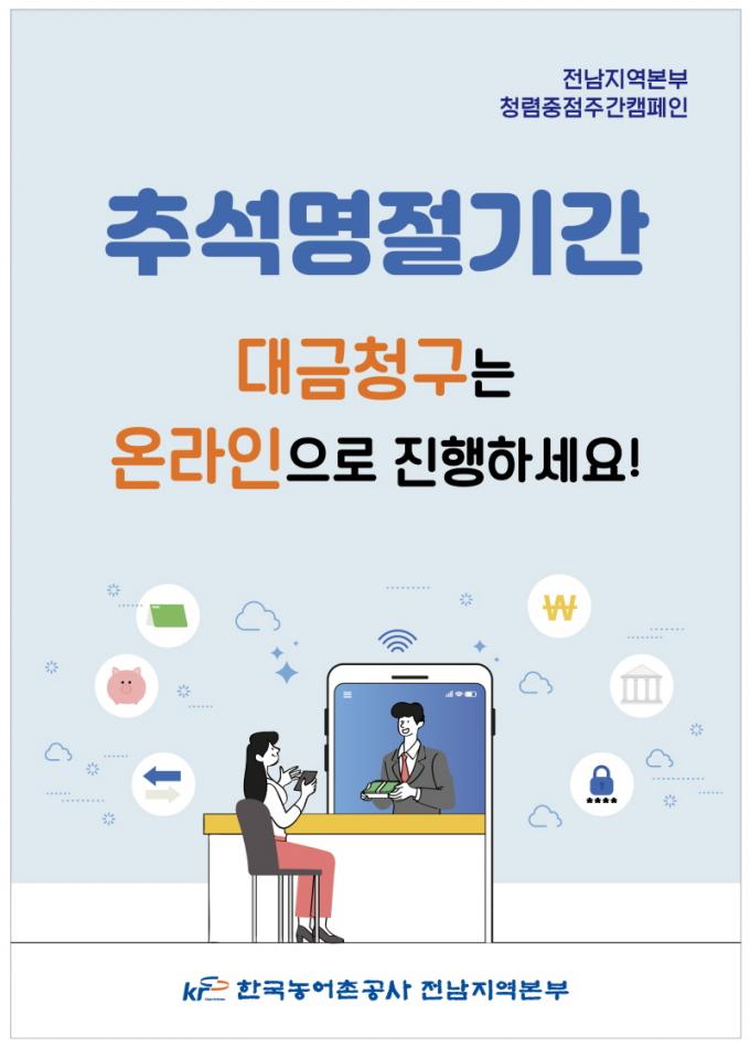 [È£³²´º½º¶óÀÎ = ¼ÀºÈ« ±âÀÚ] Çѱ¹³ó¾îÃ̰ø»ç Àü³²Áö¿ªº»ºÎ(º»ºÎÀå Á¶¿µÈ£)´Â Ãß¼® ¸íÀýÀ» ¾ÕµÎ°í °è¾à ¾÷üµéÀÇ ´ë±Ý û±¸ ¾÷¹«¸¦ ¿Â¶óÀÎÀ¸·Î ó¸®Çϴ û·ÅÁßÁ¡ÁÖ°£ Ä·ÆäÀÎÀ» Àü°³ÇÑ´Ù°í 15ÀÏ ¹àÇû´Ù.
