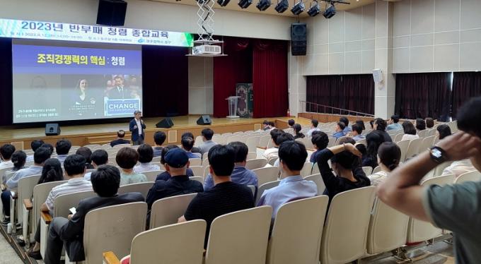 [È£³²´º½º¶óÀÎ = ¼ÀºÈ« ±âÀÚ] ±¤Áֽà µ¿±¸(ûÀå ÀÓÅÃ)´Â Àü Á÷¿øÀ» ´ë»óÀ¸·Î °øÁ÷ÀÚÀÇ ¿Ã¹Ù¸¥ û·Å À±¸®°ü È®¸³°ú °øÁ¤Çϰí Åõ¸íÇÑ ÇàÁ¤À» ±¸ÇöÇϰíÀÚ ¿Â¿ÀÇÁ¶óÀÎ ¡®¹ÝºÎÆÐ û·Å Á¾ÇÕ±³À°¡¯À» ÁøÇàÇß´Ù°í 15ÀÏ ¹àÇû´Ù.