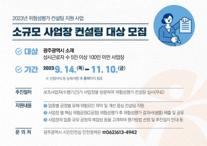 [È£³²´º½º¶óÀÎ = ¼ÀºÈ« ±âÀÚ] ±¤ÁÖ±¤¿ª½Ã(½ÃÀå °±âÁ¤)´Â »êÀ翹¹æÀ» À§ÇÑ À§Ç輺Æò°¡ ÄÁ¼³ÆÃÀ» ¹ÞÀ» ¼Ò±Ô¸ð »ç¾÷Àå 50°÷À» ¸ðÁýÇÑ´Ù.