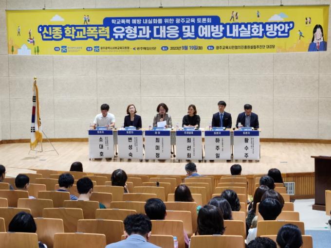 ¼ºÎ±³À°Áö¿øÃ»¿¡ µû¸£¸é À̹ø Åä·Ðȸ´Â ½Ã±³À°Ã»ÀÌ ÁÖÃÖÇÏ°í ¼ºÎ±³À°Áö¿øÃ», ±¤ÁÖ¸ÅÀϽŹ®ÀÌ °øµ¿ ÁÖ°üÇß´Ù. ¡®½ÅÁ¾ Çб³Æø·Â À¯Çü°ú ´ëÀÀ ¹× ¿¹¹æ ³»½ÇÈ ¹æ¾È¡¯À» ÁÖÁ¦·Î ÇÑ À̹ø Åä·Ðȸ¿¡¼´Â ÀÌÁ¤¼± ±³À°°¨ÀÌ Âü¼®ÇÑ °¡¿îµ¥ »çÀ̹öÆø·Â ¹®Á¦ Àνİú ¿¹¹æ ´ëÃ¥ ¸¶·ÃÀ» À§ÇÑ ¿©·¯ ÀǰߵéÀÌ ¿À°¬´Ù.