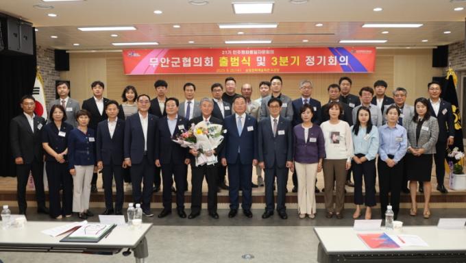 [È£³²´º½º¶óÀÎ = ¼ÀºÈ« ±âÀÚ] ¹ÎÁÖÆòÈÅëÀÏÀÚ¹®È¸ÀÇ ¹«¾È±ºÇùÀÇȸ(ȸÀå ±è¿µÁØ)´Â 9¿ù 20ÀÏ ½Â´Þ¹®È¿¹¼úȸ°ü ¼Ò°´ç¿¡¼ ´ëÇà±â°üÀåÀÎ ±è»ê ¹«¾È±º¼ö¸¦ ºñ·ÔÇÑ ÀÚ¹®À§¿ø µî 80¿© ¸íÀÌ Âü¼®ÇÑ °¡¿îµ¥ Á¦21±â Ãâ¹ü½Ä ¹× 3ºÐ±â Á¤±âȸÀǸ¦ °³ÃÖÇß´Ù.