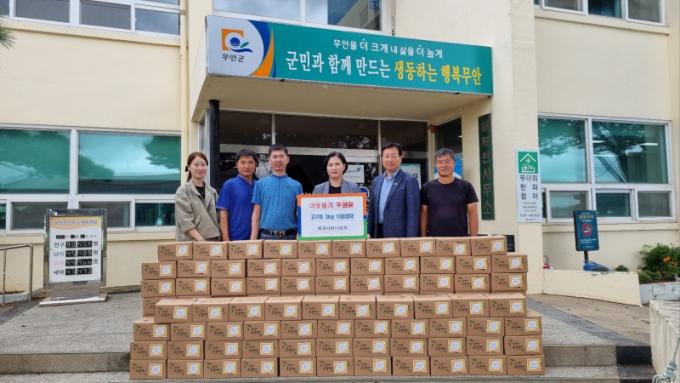 [È£³²´º½º¶óÀÎ = ¼ÀºÈ« ±âÀÚ] ¹«¾È±º ÇØÁ¦¸é ºÀ»ç´ÜüÀÎ ÇØÁ¦»ç¶û³ª´®È¸(ȸÀå ±è¿ë)´Â Áö³ 20ÀÏ ÇØÁ¦¸éÁö¿ª»çȸº¸ÀåÇùÀÇü(°øµ¿À§¿øÀå ÇÏ¿µ¹Ì, ±è´ë¿µ)¿¡ Ãß¼®À» ¸Â¾Æ ¾î·Á¿î ÀÌ¿ôµé¿¡°Ô Àü´ÞÇØ ´Þ¶ó¸ç 3kg °í±¸¸¶ 108»óÀÚ¸¦ ÈÄ¿øÇß´Ù.