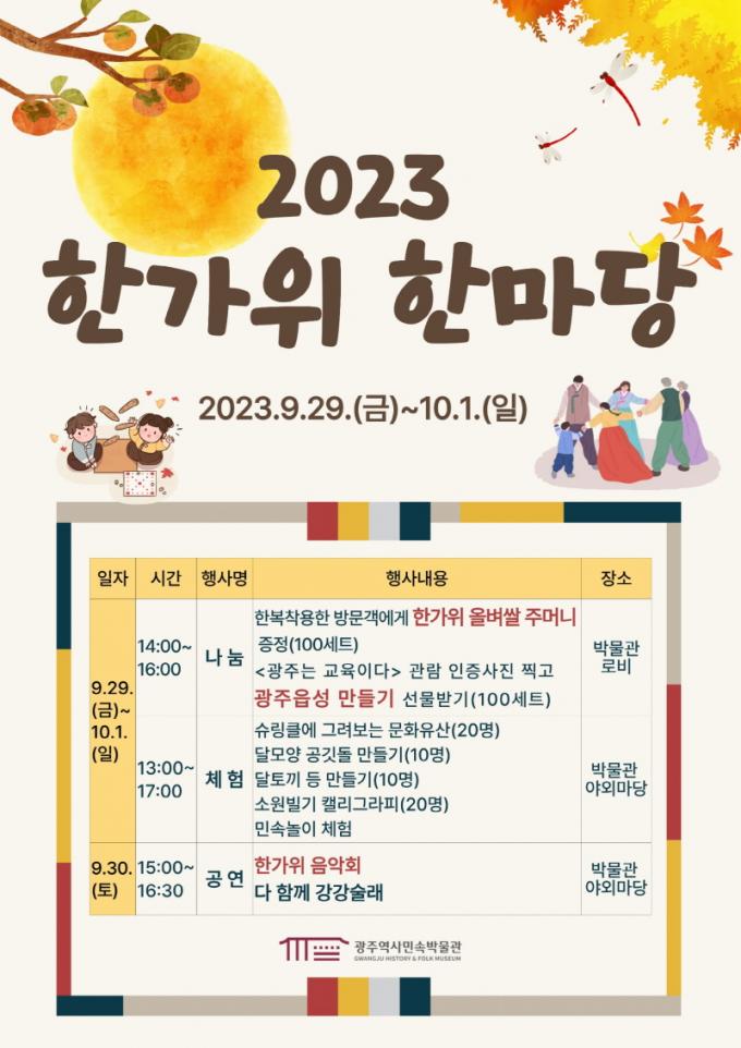 [È£³²´º½º¶óÀÎ = ¼ÀºÈ« ±âÀÚ] ±¤ÁÖ¿ª»ç¹Î¼Ó¹Ú¹°°üÀº Ãß¼® ¿¬ÈÞ¸¦ ¸Â¾Æ ±Í¼º°´°ú ½Ã¹ÎµéÀ» À§ÇØ 29ÀϺÎÅÍ 10¿ù 1ÀϱîÁö ¹Ú¹°°ü ¾ß¿Ü¸¶´ç¿¡¼ ¡®2023 ÇѰ¡À§ ÇѸ¶´ç¡¯ Çà»ç¸¦ °³ÃÖÇÑ´Ù.
