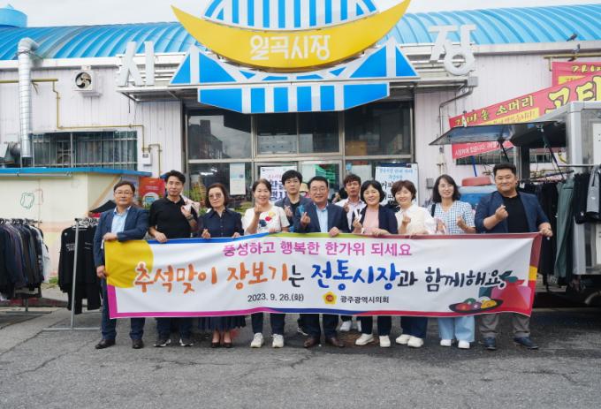 ±¤ÁÖ½ÃÀÇȸ Á¤¹«Ã¢ ÀÇÀå°ú ÀÇȸ»ç¹«Ã³ Á÷¿ø 20¿©¸íÀº ±¤»ê±¸ ¿ù°îµ¿¿¡ À§Ä¡ÇÑ ¿ù°î½ÃÀåÀ» ã¾Æ ¼¹Î°æÁ¦ÀÇ ÃÖÀϼ±¿¡¼ ¿½ÉÈ÷ ÀÏÇÏ´Â »óÀεéÀ» °Ý·ÁÇϰí, Á¦¼ö¿ëǰ°ú Ãß¼® »ýÇÊǰÀ» ±¸ÀÔÇÏ¿´´Ù.