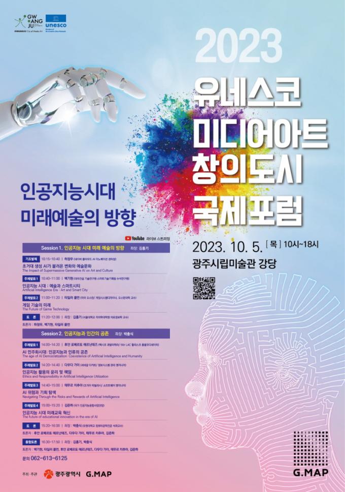 [È£³²´º½º¶óÀÎ = ¼ÀºÈ« ±âÀÚ] ±¤ÁÖ±¤¿ª½Ã(½ÃÀå °±âÁ¤)´Â ¿À´Â 10¿ù 5~6ÀÏ ±¤Áֽø³¹Ì¼ú°ü ÀÏ¿ø¿¡¼ ¡®2023 À¯³×½ºÄÚ ¹Ìµð¾î¾ÆÆ® âÀǵµ½Ã ±¹Á¦Æ÷·³¡¯À» °³ÃÖÇÑ´Ù.