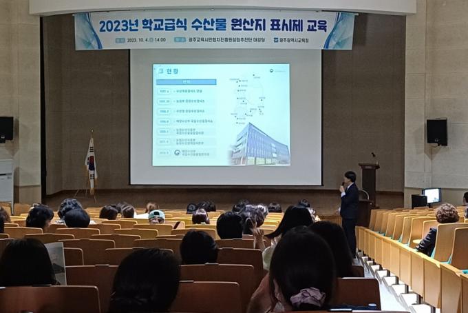 [È£³²´º½º¶óÀÎ = ¼ÀºÈ« ±âÀÚ] ±¤Áֽñ³À°Ã»ÀÌ Áö³ 4ÀÏ ±¹¸³¼ö»ê¹°Ç°Áú°ü¸®¿ø ¸ñÆ÷Áö¿ø°ú Çù·ÂÇØ °ü³» Çб³ ¿µ¾ç±³»ç ¹× ¿µ¾ç»ç 218¸íÀÌ Âü¼®ÇÑ °¡¿îµ¥ ±¤ÁÖ±³À°½Ã¹ÎÇùÄ¡ÁøÈï¿ø¼³¸³ÃßÁø´Ü ´ë°´ç¿¡¼ ¡®2023³â ¼ö»ê¹° ¿ø»êÁö Ç¥½ÃÁ¦ ±³À°¡¯À» ½Ç½ÃÇß´Ù.