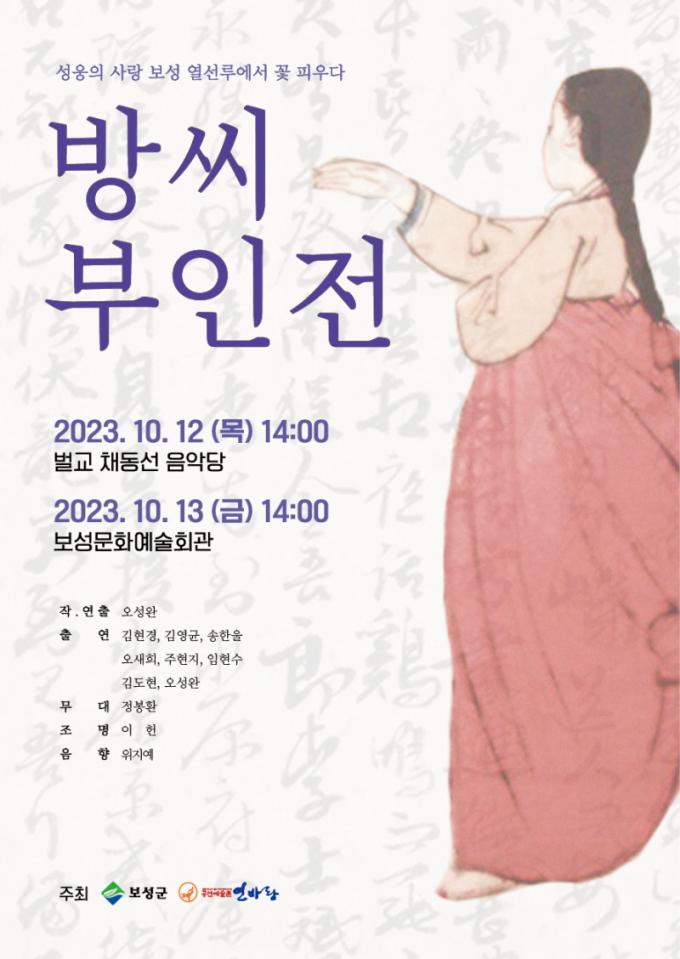 ¡®¹æ¾¾ºÎÀÎÀü¡¯Àº 10¿ù 12ÀÏ ¿ÀÈÄ 2½Ã ¹ú±³ 䵿¼±À½¾Ç´ç°ú 10¿ù 13ÀÏ ¿ÀÈÄ 2½Ã º¸¼º±º ¹®È¿¹¼úȸ°ü¿¡¼ ÁøÇàµÈ´Ù.
