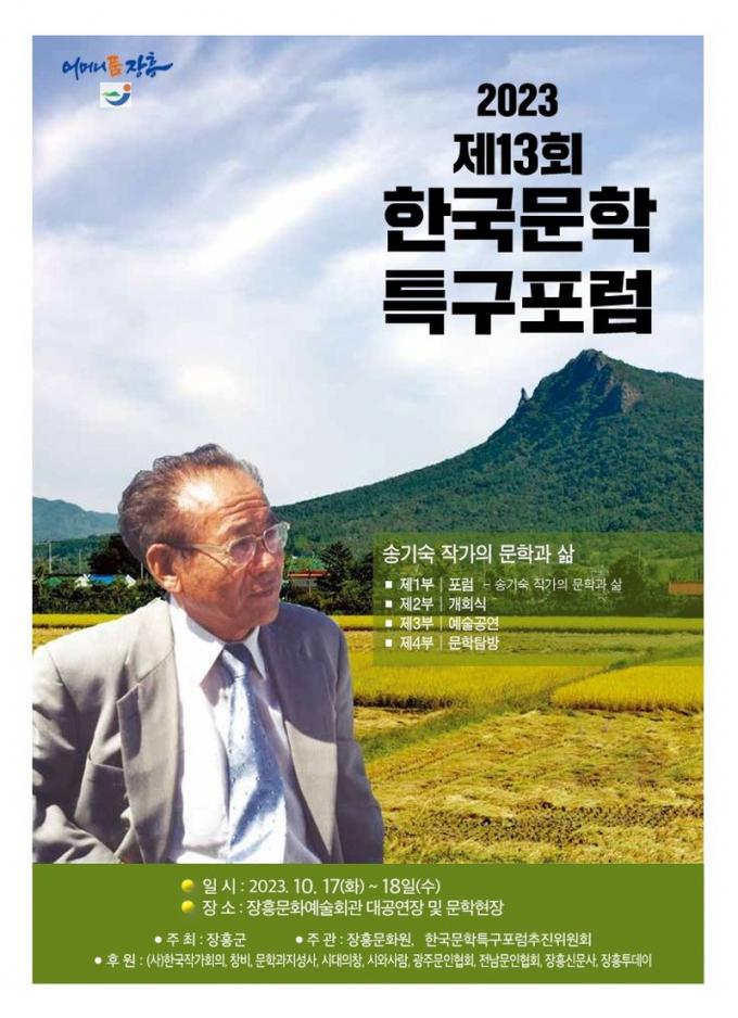 [È£³²´º½º¶óÀÎ = ¼ÀºÈ« ±âÀÚ] ÀåÈﱺ ÀåÈ﹮ȿø(¿øÀå ±è¸íȯ) ¹× Çѱ¹¹®ÇÐÆ¯±¸ Æ÷·³ ÃßÁøÀ§¿øÈ¸(¸í¿¹´ëȸÀå Çѽ¿ø, ´ëȸÀå ¹é¼öÀÎ, ÃßÁøÀ§¿øÀå ±è¸íȯ)´Â 2023 Á¦13ȸ Çѱ¹¹®ÇÐÆ¯±¸ Æ÷·³ÀÌ¡°¼Û±â¼÷ÀÇ ¹®Çаú »î¡±À̶õ ÁÖÁ¦·Î 10. 17 ~ 10. 18.±îÁö °³ÃÖÇÑ´Ù°í ¹àÇû´Ù.
