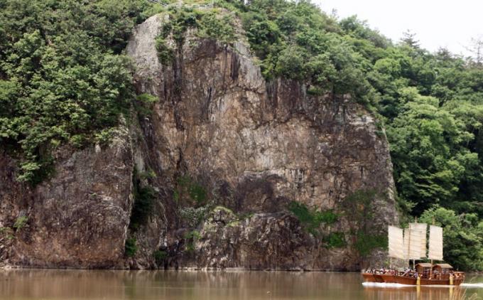 ¿µ»ê° ȲÆ÷µÀ¹è¸¦ Ÿ°Å³ª Æ÷±¸ ÂÊÀ¸·Î °È´Ù º¸¸é ±ð¾ÆÁö¸¥ µíÇÑ 56m³ôÀÌÀÇ Å« ¹ÙÀ§ Àýº®ÀÌ º¸À̴µ¥ ÀÌ ¹ÙÀ§°¡ ¾Ó¾Ï¹ÙÀ§´Ù. ÀÌ ¹ÙÀ§¿¡´Â »ï±¹½Ã´ëºÎÅÍ ÀüÇØ¿À´Â ¾Æ¶û»ç¿Í ¾Æºñ»çÀÇ ÀÌ·çÁö ¸øÇÑ ½½Ç »ç¶û À̾߱Ⱑ Àü¼³·Î ÀüÇØÁ®¿Â´Ù. ¹ÙÀ§ Àýº®À» À¯½ÉÈ÷ º¸¸é µÎ »ç¶÷ÀÌ ¼·Î¸¦ ¹Ù¶óº¸´Â ¸ð½ÀÀ» º¼ ¼ö Àִµ¥ ÀÌ ¸ð½ÀÀÌ ´«¿¡ Àß º¸ÀÌ´Â »ç¶÷Àº »ç¶ûÀÌ ÀÌ·ïÁø´Ù´Â ¼Ó¼³ÀÌ ÀÖ´Ù.