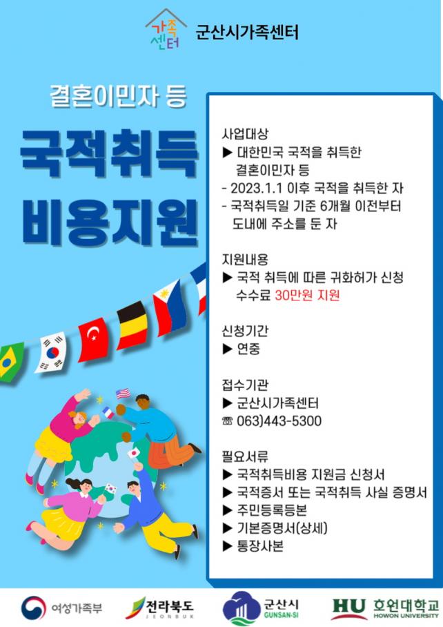 ÀÚ°Ý¿ä°ÇÀº 23³â 1¿ù 1ÀÏ ÀÌÈÄ ±¹ÀûÀ» ÃëµæÇØ ÃëµæÀÏ ±âÁØ 6°³¿ù ÀÌÀüºÎÅÍ ±º»ê¿¡ ÁÖ¼Ò¸¦ µÐ ÀÚ·Î, ±¹Àû ÃëµæÀϷκÎÅÍ 2³â ³» ½ÅûÇÒ ¼ö ÀÖÀ¸¸ç, ±¹Àû Ãëµæºñ¿ë 30¸¸¿øÀ» Áö¿øÇÑ´Ù.