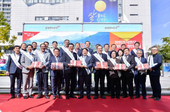 [È£³²´º½º¶óÀÎ = ¼ÀºÈ« ±âÀÚ] ±¤Áֽùΰú ÇÔ²²ÇÏ´Â ¡®2023 ÇÔÆòõÁöÇÑ¿ì ¼ÒºñÃËÁøÇà»ç¡¯°¡ 18ÀÏ ±¤ÁÖ½Ã-ÇÔÆò±º »ó»ý‧ÈÇÕÀ» ±âÄ¡·Î ½Ãû ¾Õ Àܵð±¤Àå¿¡¼ ¿·È´Ù.