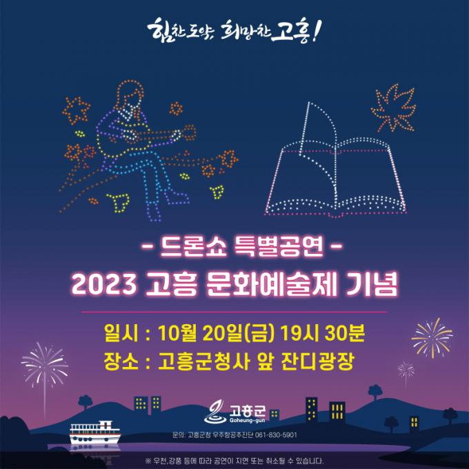 [È£³²´º½º¶óÀÎ = ¼ÀºÈ« ±âÀÚ] ¡®2023 °íÈï ¹®È¿¹¼úÁ¦¡¯ °³¸·½ÄÀ» ±â³äÇØ µå·Ð¼î Ưº°°ø¿¬ÀÌ 20ÀÏ(±Ý) 19½Ã 30ºÐ °íÈﱺû»ç ¾Õ Àܵð±¤Àå¿¡¼ ³¶¸¸ÀûÀÎ °¡À»¹ãÀ» ¹è°æÀ¸·Î ÆîÃÄÁø´Ù.