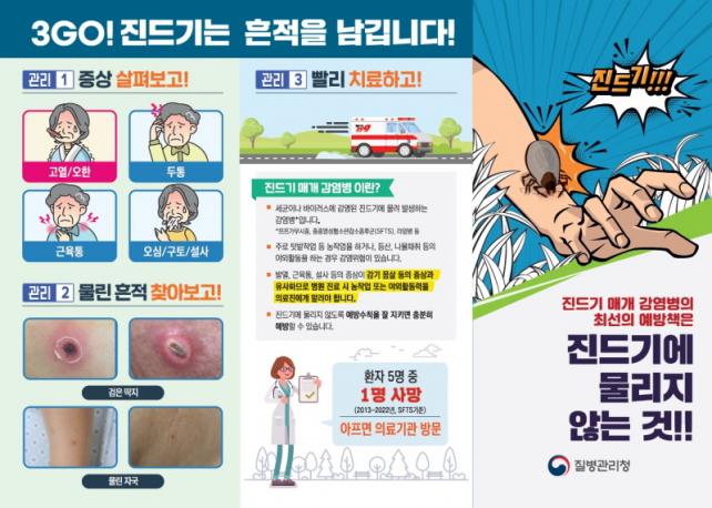 º¸°Ç¼Ò¿¡ µû¸£¸é Áøµå±â¸¦ ¸Å°³·Î ÇÏ´Â °¨¿°º´Àº ÂêÂê°¡¹«½ÃÁõ°ú ÁßÁõ¿¼ºÇ÷¼ÒÆÇ °¨¼ÒÁõÈıº(SFTS)ÀÌ ´ëÇ¥ÀûÀÌ´Ù. ÂêÂê°¡¹«½ÃÁõÀº ÅÐÁøµå±âÀÇ À¯Ãæ¿¡ ¹°¸± °æ¿ì, ÁßÁõ¿¼ºÇ÷¼ÒÆÇ°¨¼ÒÁõÈıºÀº ÀÛÀº¼ÒÇÇÂüÁøµå±â¿¡ ¹°¸®¸é °¨¿°µÉ ¼ö ÀÖÀ¸¸ç, °¡À»Ã¶(9¿ù~11¿ù)¿¡ ¸¹ÀÌ ¹ß»ýÇÑ´Ù.