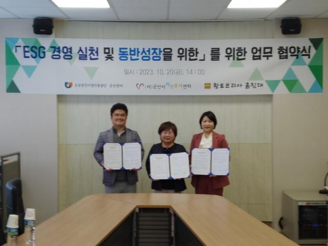 [È£³²´º½º¶óÀÎ = ¼ÀºÈ« ±âÀÚ] ±º»ê½Ã´Â (»ç)±º»ê½ÃÀÚ¿øºÀ»ç¼¾ÅÍ(ÀÌ»çÀå ȲÁø)°¡ Áö³ 20ÀÏ ¼Ò»ó°øÀνÃÀåÁøÈï°ø´Ü±º»ê¼¾ÅÍ(¼¾ÅÍÀå ¼±¸í¿Á), ȲÅäÄÚ¸®¾Æ Èëħ´ë(ÀÌ»çÀå ¹èÁ¾¹®)¿Í ÀÚ¿øºÀ»ç Áö¿øÅä´ë¸¦ ¸¶·ÃÇÏ°í ¡®ESG°æ¿µ½Çõ ¹× µ¿¹Ý ¼ºÀåÀ» À§ÇÑ ¾÷¹«Çù¾à¡¯À» ü°áÇß´Ù°í ¹àÇû´Ù.