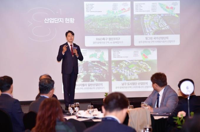 ±¤ÁÖ±¤¿ª½Ã(½ÃÀå °±âÁ¤)´Â 27ÀÏ ¼¿ï ±×·£µåÀÎÅÍÄÁƼ³ÙŻȣÅÚ¿¡¼ ±¹³»¿Ü 100¿©°³ ÅõÀÚÀÚµéÀ» ´ë»óÀ¸·Î ±¤ÁÖ ÅõÀÚȯ°æ°ú ½Å»ê¾÷ À°¼º ¹× Áö¿ø Á¤Ã¥ µîÀ» ¼Ò°³ÇÏ´Â ÅõÀÚȯ°æ¼³¸íȸ¸¦ °³ÃÖÇß´Ù. À̳¯ ÅõÀÚ¼³¸íȸ¿¡´Â ±¤ÁÖ°æÁ¦ÀÚÀ¯±¸¿ªÃ», ÀΰøÁö´ÉÀ¶ÇÕ»ç¾÷´Ü, ±¤Áֱ׸°Ä«ÁøÈï¿ø, ±¤ÁÖÅ×Å©³ëÆÄÅ© µî Áö¿ª ±â¾÷Áö¿ø±â°üµéÀÌ ÇÔ²² Çß´Ù.