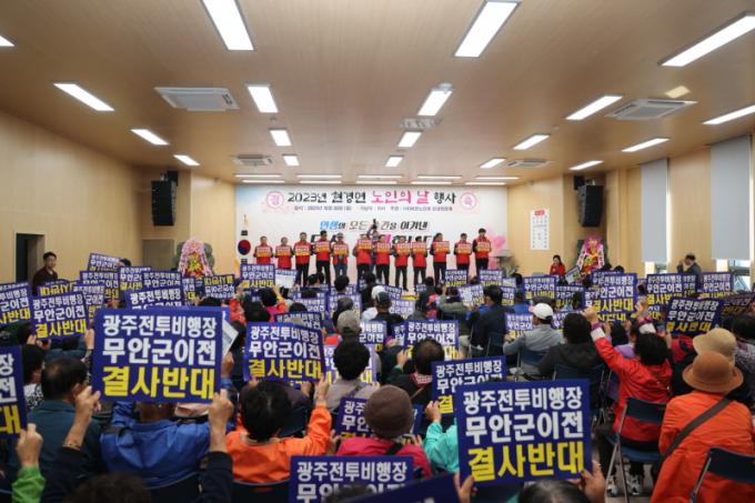 ÀÏ·ÎÀ¾ ³ëÀÎÀÇ ³¯ Çà»ç¿¡ Âü¿©ÇÑ A¸ð¾¾´Â ¡°±¤ÁÖ ±º °øÇ× ¹«¾È ÀÌÀüÀÌ ±¹ºñ·Î ±¹°¡¿¡¼ ÃßÁøÇϰí ÀÖ´Â »ç¾÷ÀÎ ÁÙ ¾Ë¾Ò´Âµ¥, ±¤Áֽÿ¡¼ ÀÚ±âµé ¼ÒÀ½ÇÇÇØ¸¦ ÇØ¼ÒÇϰí ÁÖº¯ °³¹ßÇÏ·Á°í ±¤Áֽÿ¡¼ ½Ãºñ¸¦ µé¿©¼ ÇÏ´Â »ç¾÷À̶ó°í µè°í ±è¿µ·ÏµµÁö»ç°¡ ³ª¼¼ Àú¸® ³¸®´Ï Àü³²µµÁö»ç°¡ ¸Â´ÂÁö Àǹ®¡±À̶ó¸ç Àû±Ø ¹Ý´ëÇØ¾ß ÇÑ´Ù°í ¾´¼Ò¸®Çß´Ù.