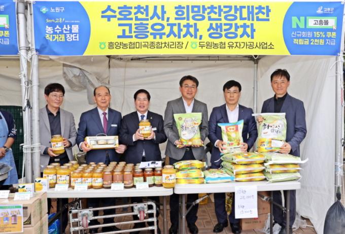 ±ºÀº Áö³ 10¿ù 26ÀϺÎÅÍ 28ÀϱîÁö 3Àϰ£ ³ë¿ø±¸ Áß°è±Ù¸°°ø¿ø¿¡¼ ¿¸° ¡®°íÈﱺ ³ó¼öƯ»ê¹° Á÷°Å·¡ ÀåÅÍ¡¯¿¡¼ 31°³ ¾÷ü°¡ Âü¿©ÇØ ½Ò, À¯ÀÚ, ¼®·ù, ±èÄ¡, ¼ö»ê¹° µî 150¿© °³ ǰ¸ñÀ» ÆÇ¸ÅÇØ Àü³âº¸´Ù 30%°¡ ´Ã¾î³ 2¾ï 8¹é¸¸ ¿øÀ̶ó´Â ¸ÅÃâ ¼º°ú¸¦ °Åµ×´Ù.