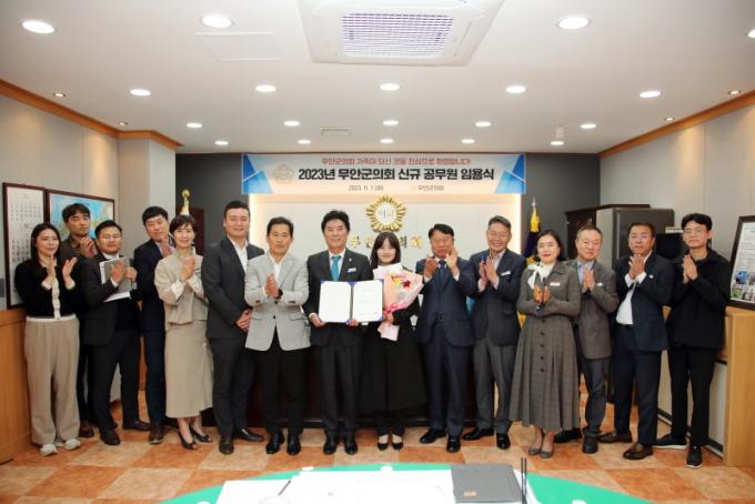 [È£³²´º½º¶óÀÎ = ¼ÀºÈ« ±âÀÚ] ¹«¾È±ºÀÇȸ(ÀÇÀå ±è°æÇö)´Â 11¿ù 7ÀÏ ±ºÀÇȸ ÀÇÀå½Ç¿¡¼ ½Å±Ô ÀÓ¿ëÇÑ Á¤Ã¥Áö¿ø°ü 1¸í(ÇàÁ¤9±Þ)¿¡°Ô ÀÓ¿ëÀåÀ» ¼ö¿©Çß´Ù.
