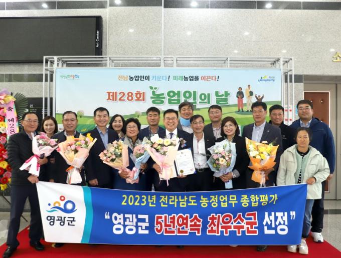 [È£³²´º½º¶óÀÎ = ¼ÀºÈ« ±âÀÚ] ¿µ±¤±º(±º¼ö °Á¾¸¸)Àº 11¿ù 10ÀÏ À强±º ¹®È¿¹¼úȸ°ü¿¡¼ ¿¸° Á¦28ȸ ³ó¾÷ÀÎÀÇ ³¯ ±â³äÇà»ç¿¡¼ Àü³² ÃÖÃÊ 5³â ¿¬¼Ó Àü¶ó³²µµ ³óÁ¤¾÷¹«Æò°¡ ¡°ÃÖ¿ì¼ö»ó¡±À» ¼ö»óÇß´Ù°í ¹àÇû´Ù.