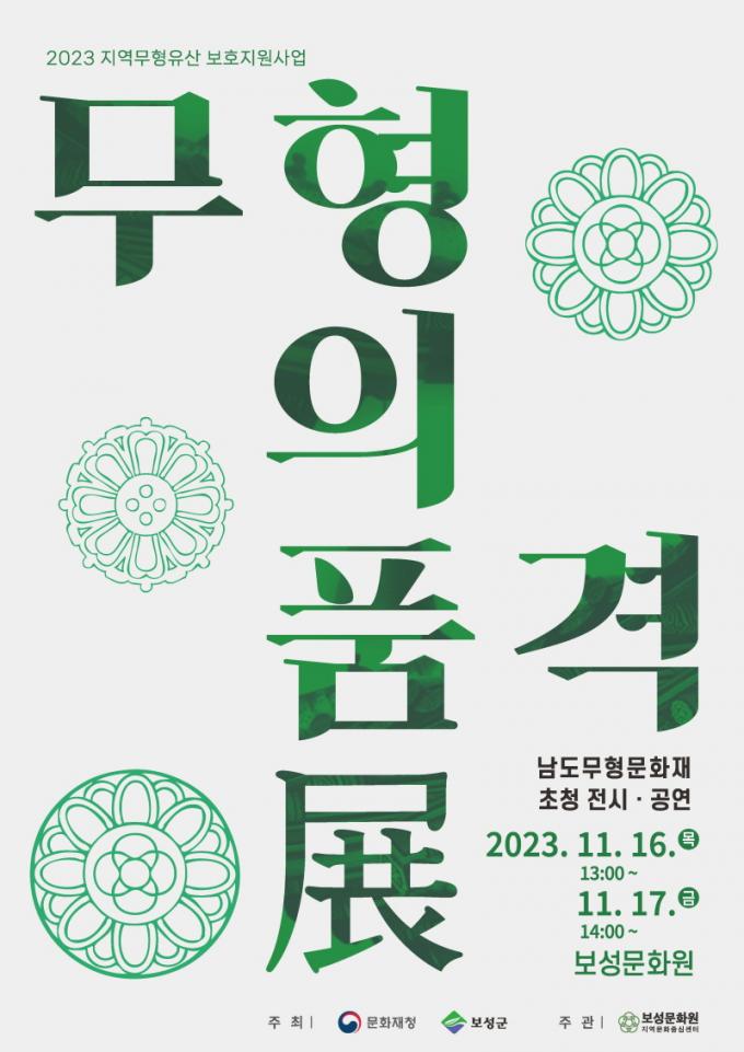 [È£³²´º½º¶óÀÎ = ¼ÀºÈ« ±âÀÚ] º¸¼º±ºÀº ¿À´Â 16ÀϺÎÅÍ ÀÌÆ²°£ º¸¼º¹®È¿ø¿¡¼ ¹®ÈÀçû °ø¸ð»ç¾÷ÀÎ ¡®2023 Áö¿ª ¹«ÇüÀ¯»ê º¸È£Áö¿ø »ç¾÷¡¯ÀÇ ÀÏȯÀ¸·Î ¡®³²µµ¹«ÇüÀ¯»ê ÃÊû Àü½Ã․°ø¿¬¡¯ÀÌ ÆîÃÄÁø´Ù°í ¹àÇû´Ù.