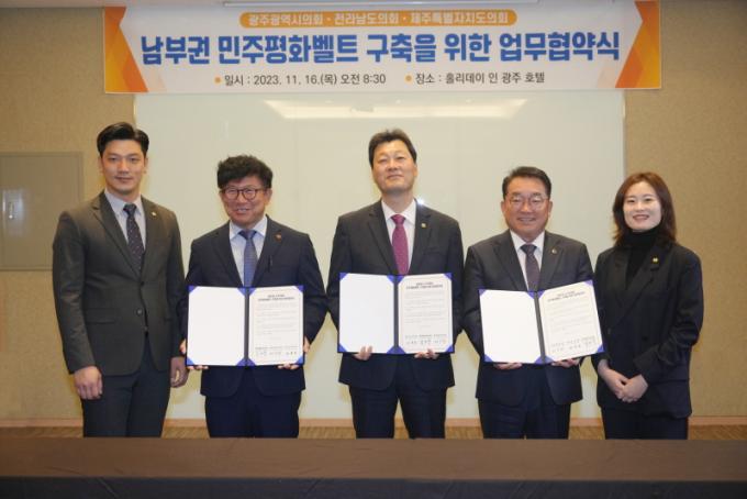 [È£³²´º½º¶óÀÎ = ¼ÀºÈ« ±âÀÚ] ±¤ÁÖ±¤¿ª½ÃÀÇȸ(ÀÇÀå Á¤¹«Ã¢)´Â 16ÀÏ ¿ÀÀü Ȧ¸®µ¥ÀÌÀÎ ±¤ÁÖ È£ÅÚ¿¡¼ Àü¶ó³²µµÀÇȸ(ÀÇÀå ¼µ¿¿í)‧Á¦ÁÖÆ¯º°ÀÚÄ¡µµÀÇȸ(ÀÇÀå ±è°æÇÐ)¿Í ¡®³²ºÎ±Ç ¹ÎÁÖÆòȺ§Æ® ±¸ÃàÀ» À§ÇÑ ¾÷¹«Çù¾à½Ä¡¯À» °³ÃÖÇß´Ù°í ¹àÇû´Ù.