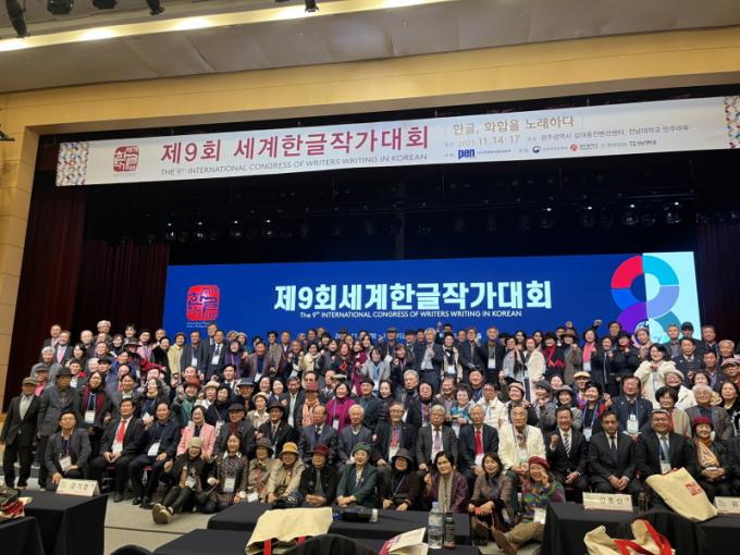 [È£³²´º½º¶óÀÎ = ¼ÀºÈ« ±âÀÚ] ±¤ÁÖ¿¡¼ ¿¸° ¡®Á¦9ȸ ¼¼°èÇѱÛÀÛ°¡´ëȸ¡¯°¡ ÇѱÛÀÇ ¿ì¼ö¼ºÀ» ÀçÁ¶¸íÇϰí Çѱ۹®ÇÐÀÌ ³ª¾Æ°¡¾ß ÇÒ ¹æÇâÀ» Á¦½ÃÇÏ¸ç ¼ºÈ²¸®¿¡ Æó¸·Çß´Ù.