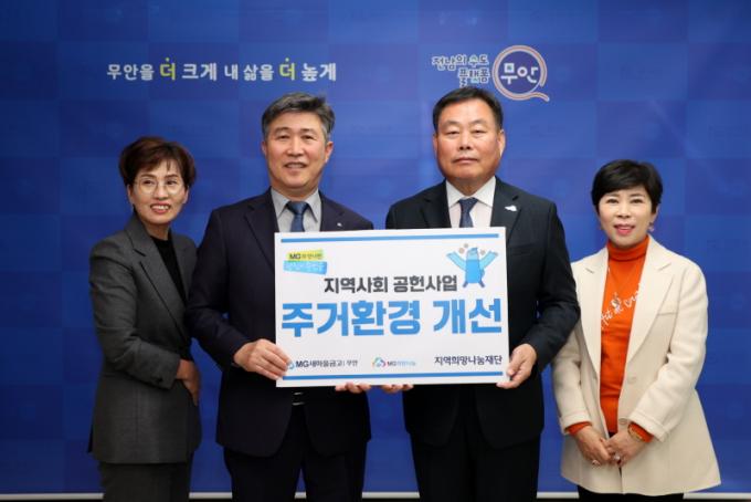 [È£³²´º½º¶óÀÎ = ¼ÀºÈ« ±âÀÚ] ¹«¾È±º(±º¼ö ±è»ê)Àº ¹«¾È»õ¸¶À»±Ý°í(ÀÌ»çÀå ÀÌÂùÅÂ)¿Í MG»õ¸¶À»±Ý°í Áö¿ªÈñ¸Á³ª´®Àç´ÜÀÌ Àú¼ÒµæÃþ ÁÖ°Åȯ°æ°³¼±»ç¾÷À» À§ÇÑ ÁöÁ¤ÈÄ¿ø±Ý 1,000¸¸ ¿øÀ» ±âŹÇß´Ù°í ¹àÇû´Ù.