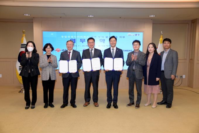 À̹ø ½Å±Ô ÆÝµå °á¼ºÀ» °è±â·Î ±¤Áֽô 20ÀÏ ½Ãû ºñÁî´Ï½º·ë¿¡¼ ±è±¤Áø ¹®È°æÁ¦ºÎ½ÃÀå, ±è¿µÁý ±¤ÁÖÅ×Å©³ëÆÄÅ© ¿øÀå, ÆÝµå¿î¿ë»çÀÎ ¢ßƼÀκ£½ºÆ®¸ÕÆ®ÀÇ ±èÅÂÈÆ ´ëÇ¥°¡ Âü¼®ÇÑ °¡¿îµ¥ Áö¿ª â¾÷±â¾÷ ÅõÀÚ Çù·ÂÀ» À§ÇÑ ¾÷¹« Çù¾àÀ» ü°áÇß´Ù.