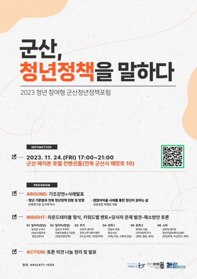 [È£³²´º½º¶óÀÎ = ¼ÀºÈ« ±âÀÚ] ±º»ê½Ã´Â û³â¶ãÀÌ ¿À´Â 24ÀÏ ¿ÀÈÄ 5½Ã ±º»ê ¿¡À̺» È£ÅÚ ÄÁº¥¼ÇȦ¿¡¼ ¡®2023³â ±º»ê û³âÁ¤Ã¥Æ÷·³¡¯À» °³ÃÖÇÑ´Ù°í ¹àÇû´Ù.