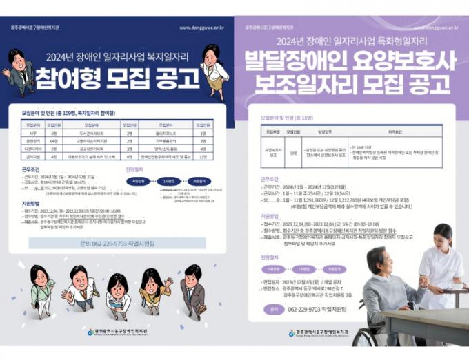 ¸ðÁýÀ¯Çü ¹× ÀοøÀ¸·Î º¹ÁöÀÏÀÚ¸® Âü¿©Çü 109¸í, ƯÈÇü ÀÏÀÚ¸® 18¸íÀ» ¸ðÁýÇϸç, º¹ÁöÀÏÀÚ¸® Âü¿©ÇüÀº ±¤ÁÖ±¤¿ª½Ã µ¿±¸¿¡ °ÅÁÖÇÏ´Â ¸¸ 18¼¼ ÀÌ»ó µî·ÏµÈ Àå¾ÖÀÎ Áß ¹ÌÃë¾÷ÀÚ¸¦ ´ë»óÀ¸·Î ¸ðÁýÇϰí ÀÖÀ¸¸ç, ƯÈÇü ÀÏÀÚ¸®´Â ±¤ÁÖ±¤¿ª½Ã¿¡ °ÅÁÖÇÏ´Â ¸¸ 18¼¼ ÀÌ»ó ¹ß´ÞÀå¾ÖÀÎ Áß ¹ÌÃë¾÷ÀÚ¸¦ ´ë»óÀ¸·Î ¸ðÁýÇϰí ÀÖ´Ù.